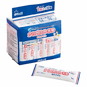 商品名:からだふきぬれタオル 大判1枚入(30個) ・保湿成分配合のステック個装のからだふき ぬれタオル ・施設で行われる清拭タオルの使用方法が 可能なたたみ方になっています ・季節に合わせて、電子レンジで温めたり、 冷蔵庫で冷やして使えます。